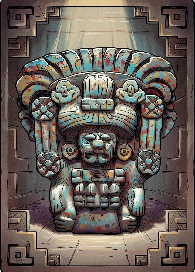 Pitao Cozobi, the Zapotec Force of maize and renewal, brings the transformative fire of purification. Often called the “Great White Fainting Conch,” he represents patience and rebirth through fire. Think of him as the ordered flame that turns last season’s corn stalks into fertile ash. His gentle yet persistent flame consumes what no longer serves, leaving rich soil for new life.